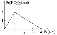 下列图象是表示铁跟一定量硝酸反应时,铁和硝酸铁之间物质的量(mo1)的关系,其中正确的是