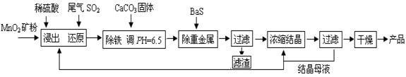 MnSO4·H2O在工业、农业等方面有广泛的应用。工业上用化工厂尾气中低浓度SO2还原MnO2矿制备MnSO4·H2O过程如下:![]()