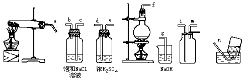 ②在下列各装置中,选用必要的装置,制备纯净干燥的Cl2,并按从左到右的顺序连接仪器,用接口字母按顺序连接为: 。(顺序错误不得分)![]()
