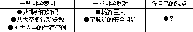 Outer Space Explorations, YES or NO?We had an argument over whether it was necessary to carry out outer space explorations at a class meeting the other day.
