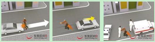 随着人们生活水平的提高,汽车已逐步走进千家万户。交通事故与日俱增,交通肇事逃逸不断发生。请根据下列三幅图描述一起发生在你放学回家的路中,亲眼目睹一位老太太被一辆车撞倒的交通肇事逃逸事件,以及你的感受。