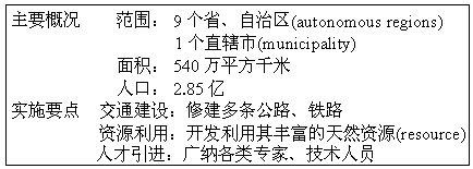 假如你是某英语报记者,为了向世界各国报道我国西部开发的有关情况,近日赴西部进行采访。现在,请你将采访到的情况写一篇报道。报道要点如下: