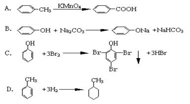 在苯和它的衍生物中, 由于侧链与苯环间的相互影响,从而使它们在性质上都发生了一些变化。但下列反应中不能够说明这一现象的是