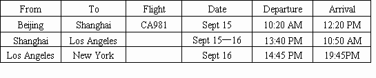 假设你叫陈飞,即将赴美国纽约学习,今天早上刚买到机票,请根据机票上的起飞时间, 中途停留的地点,在美国等候的时间及到达终点的时间,写信告诉到机场接你的美国朋友John。写信日期2003年9月2日。