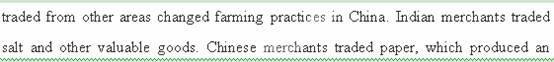 immediate effect on the West. Apples traveled from centre Asia to Rome. The Chinese had learned to graft(嫁接) different trees together to make new kinds of fruit. They passed this science on to others, including the Romans. The Romans used grafting to grow the apple. Trading along the Silk Road led to world-wide business 2,000 years before the World Wide Web.