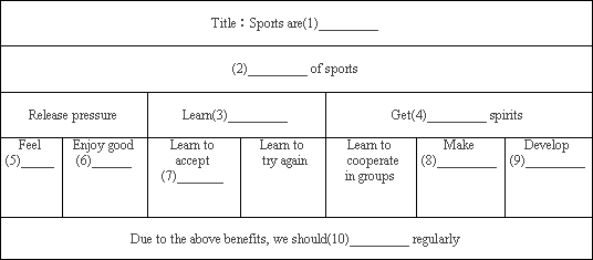 Some people think adults don't need to do sports, especially those who are strong and healthy.But in fact, sports are necessary.They can release(释放)pressure and teach us survival skills for life.Also they give us pleasure and teach us the spirit of teamwork.