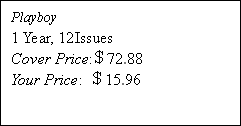 Playboy is a magazine of literature, political thought, sports, commentary and humor. Although Playboy is most well-known for its pictorials (插图)of beautiful women, it is also highly regarded for its interviews and fiction writing. Playboy includes regular feature articles on finance, sports, self-improvement, technology, and psychology. You must be 18 or older to order Playboy.![]()