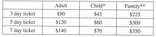 **A family is defined as 2 adults and any number of children from 4 to under 16 years of age from
