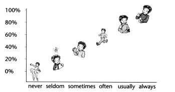 Millie wants to join the Get Fit Club. She is telling the trainer about her diet and lifestyle. Complete their conversation with 'always', ‘usually', ‘often', ‘sometimes', ‘seldom' and 'never’.