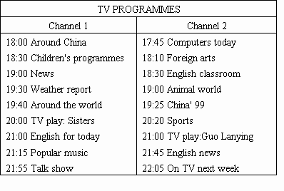 | 5. The programme at the end of Channel 2 means _____ on TV next week. | |||||
