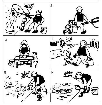 摘要:根据下面六幅图画提供的情景.用英语写一段话.假设画中人物是Mr Black父子.字数控制在80~120之间. 可能用到的词汇: catch a fish捉住一条鱼 stool凳子 set-free给--自由,把--放生 swallow吞掉 at sunset在日落之时 Unit 17 Famous women