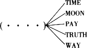 What word can be placed in front of the other five to form five new words?Each dot represents a letter.