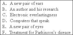 Kurzweil uses this technology to help people with physical disabilities.One of his ideas is a “seeing machine”.This will be “like a friend that could describe what is going on in the visible world”, he explains.Blind people will use a visual sensor which will probably be built into a pair of sunglasses.This sensor will describe to the people everything it sees.