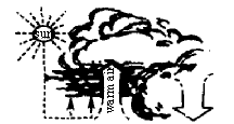 Air is a gas that expands when heated, gets lighter, and moves upward. When air is cooled, it gets heavier, sinks close to the earth's surface, and flows like water in a great river. As warm air rises, cold air rushes in to take its place. Thus winds originate. The winds that blow high above us are caused by the warmer air running away from colder air. The wind we feel near the earth's surface is the heavy colder air trying hard to catch the warmer air. Changes in temperature cause the air to move. And of course there are many changes, so air movements are taking place practically all the time.