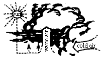 Air is a gas that expands(膨胀) when heated, gets lighter, and moves upward. When air is cooled, it gets heavier, sinks close to the earth's surface, and flows like water in a great river. As warm air rises, cold air rushes in to take its place. Thus winds originate(起源). The winds that blow high above us are caused by the warmer air running away from colder air. The wind we feel near the earth's surface is the heavy colder air trying hard to catch the warmer air. Changes in temperature cause the air to move. And of course there are many changes, so air movements are taking place practically all the time.