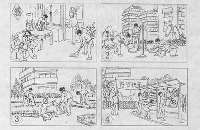 请你按照图片顺序,以“Community Service”为题,向学校英文校刊投稿,介绍这次活动情况。