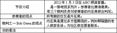 参考词汇:参赛者contestant 裁判judge 社区community