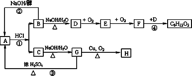 (15分)A~H有如下转化关系,有些反应条件已省去,已知: