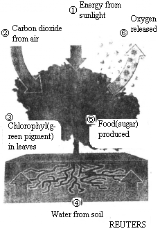 ⑤Leaves use chlorophyll and sunlight to change the water and carbon dioxide into food,or sugar,for the plant