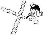 thinking.In a wide open area,make a colorful cross out of rocks to show your present position.