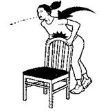 Aim to hit the top of the chair against your stomach,in the soft part below the bony upsidedown