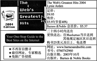 | The Web’s Greatest Hits 2006 by Lynie Arden 定价 $9.95 售价$5.97 (节省40%) Barnes & Noble 会员价位:5.37 二十四小时送出 更快送达:住Manhattan 的 当日送达 其他规定地:次日送达
