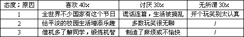假如你是英语报记者,请根据以下材料写一篇短文,报道同学们对愚人节的不同态度。