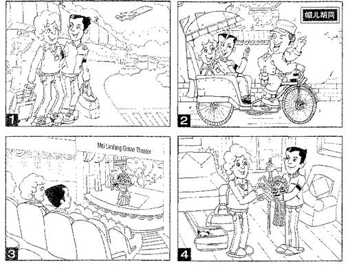 查看习题详情和答案>>假设你是红星中学高三(1)班的学生李华,上周你接待了美国交换生Mike。为帮助他了 解中国传统文化,你为他安排了一系列的活动。请根据图片的先后顺序,将主要活动记述下 来,向校报投稿。