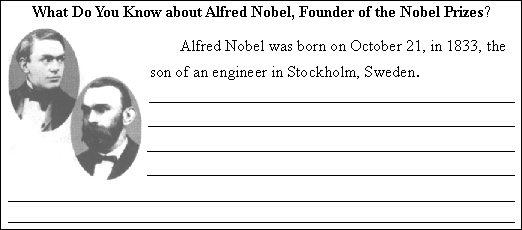假如你为学校黑板报写稿介绍诺贝尔.请根据以下表格中的提示写一篇图文并茂的短文.