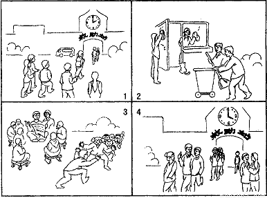作为社区的志愿者,你与同班的几名同学每隔一周的星期六到学校附近的社会救济站,为暂时无法回家的老人和儿童做一些力所能及的事情。请根据提示和下面图画的内容为学校的墙报写一篇报道。