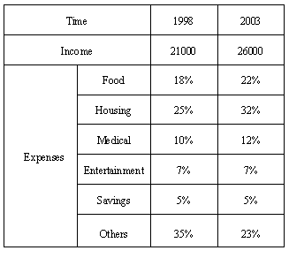 仔细阅读下面的图表,然后写一篇文章,介绍中国普通家庭在近 5年内的收入及开支情况,以The Average Family Income and Expenses in China为题,字数:80-120.