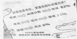 央视时空调查栏目针对目前我国现行的高考填报志愿的三种形式作了一个网上调查,调查的结果如下,你作为一名即将参加2008年高考的一名考生,请简要的描述调查的结果,并谈一谈你对此事的看法并说明你的理由。