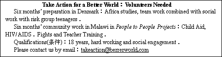 Six months’ preparation in Denmark: Africa studies, team work combined with social work risk group teenagers.