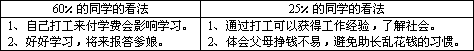 | 1.自己打工来付学费会影响学习。 2.好好学习,将来报答爹娘。 | 1.通过打工可以获得工作经验,了解社会。 2.体会父母挣钱不易,避免助长乱花钱的习惯。 |