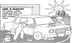 请欣赏下面一幅图画,写一篇题目为“SAVE WATER”的短文,字数120左右。