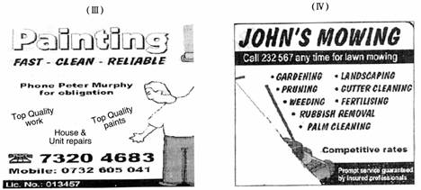 Advertising means to draw people’s attention to something. It is a central feature of our lives. Sales depend upon it. So does our knowledge of what is available. Read the following advertisements and see how much you understand them. ![]()