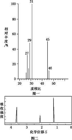 为了测定某有机物A的结构,做如下实验:①将2.3g该有机物完全燃烧,生成0.1mol CO2和?2.7g水;②用质谱仪测定其相对分子质量,得如图一所示的质谱图;③用核磁共振仪处理该化合物,得到如图二所示图谱,图中三个峰的面积之比是?1:2:3?.