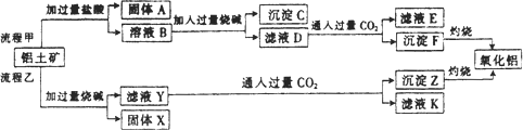 从铝土矿(主要成分是Al2O3,含SiO2、Fe2O3、MgO等杂质)中提取氧化铝的通常有两种工艺。因向铝土矿中加入NaOH时形成的赤泥(残渣)中常含有铝硅酸钠,故流程乙常处理SiO2含量小于8%的铝土矿,若SiO2含量较高则可采用流程甲来处理。