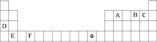 A、B、C、D、E、F、G是元素周期表前四周期的元素,它们在元素周期中的位置如下图所示:![]()