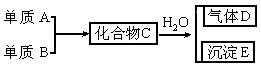 在一定条件下,单质A和B反应,生成化合物C,C与水反应生成气体D和白色沉淀E(如下框图所示):