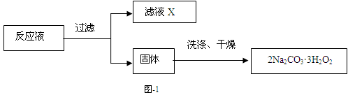 过碳酸钠(2Na2CO3·3H2O2)是一种集洗涤、漂白、杀菌于一体的氧系漂白剂,该晶体具有Na2CO3和H2O2的双重性质。利用图-2装置制备过碳酸钠,在冷水浴中充分反应后,按图-1流程可获得过碳酸钠产品。![]()