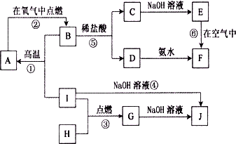 A~I分别表示中学化学中常见的一种物质,它们之间相互转化关系如图所示(部分反应物、生成物没有列出),且已知A、B、C、D、E、F六种物质中均含同一种元素,A、I是两种常见的金属单质.H在常温下是一种常见的非金属气态单质.