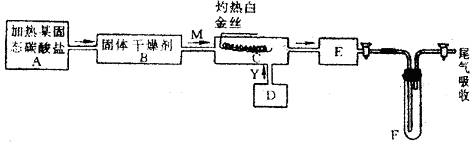 图中“→”表示气体流向,M是一种纯净而干燥的气体,Y是另一种气体,E内有棕色气体产生。实验所用的物质,只能由下列物质中选取:Na2CO3、Na2O2、NaCl、Na2O、CaCl2、(NH4)2CO3、碱石灰等固体及蒸馏水。