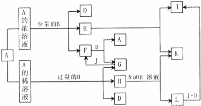 A、B是中学化学里常用的物质,其中B是单质,A是化合物;它们之间相互反应以及生成物之间的转化关系如下图所示.已知,I、L两种物质中除了含有不同价态的B元素外,还都含有另外两种相同的短周期元素.请回答: