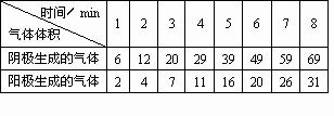 查看习题详情和答案>>| 时间/min气体体积/L | 1 | 2 | 3 | 4 | 5 | 6 | 7 | 8 |