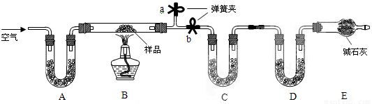 有一含NaCl、Na2CO3·10H2O和NaHCO3的混合物,某同学设计如下实验,通过测量反应前后C、D装置质量的变化,测定该混合物中各组分的质量分数。