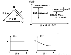 ①若图b符合事实,则D为________(填化学式),此时图b中x________7(填“﹥”“﹤”“=”)。②若图c符合事实,则其pH变化的原因是_______(用离子方程式表示)