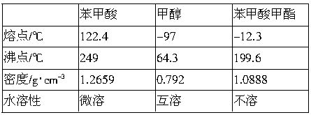 | | 苯甲酸 | 甲醇 | 苯甲酸甲酯 |