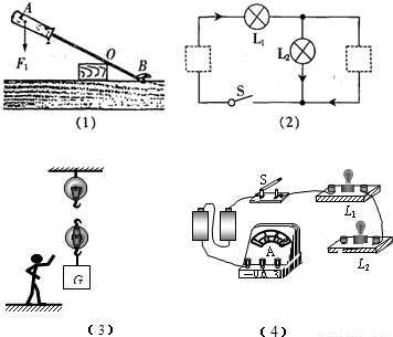 (1)如图(1)为用螺丝刀撬图钉的示意图,请在图中画出动力F1的力臂l1和阻力F2的示意图.