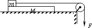 如图,一块质量为M=2 kg,长L=1 m的匀质木板放在足够长的光滑水平桌面上,初始时速度为零.板的最左端放置一个质量m=1 kg的小物块,小物块与木板间的动摩擦因数为μ=0.2,小物块上连接一根足够长的水平轻质细绳,细绳跨过位于桌面边缘的定滑轮(细绳与滑轮间的摩擦不计,木板与滑轮之间距离足够长,g=10 m/s2).